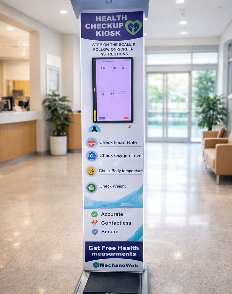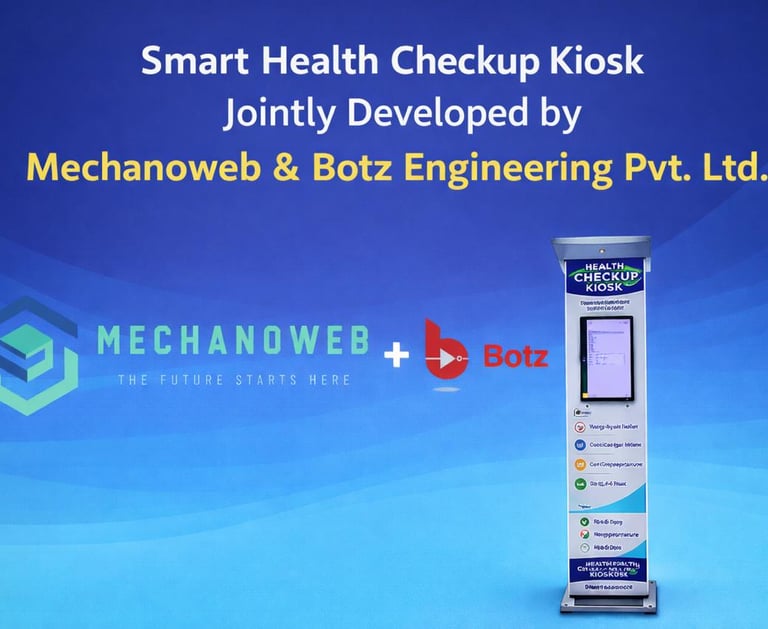 Mechanoweb, in collaboration with Botz Engineering Pvt. Ltd., has developed an innovative Smart Health Checkup Kiosk designed to streamline primary patient health screening in hospitals and clinics.